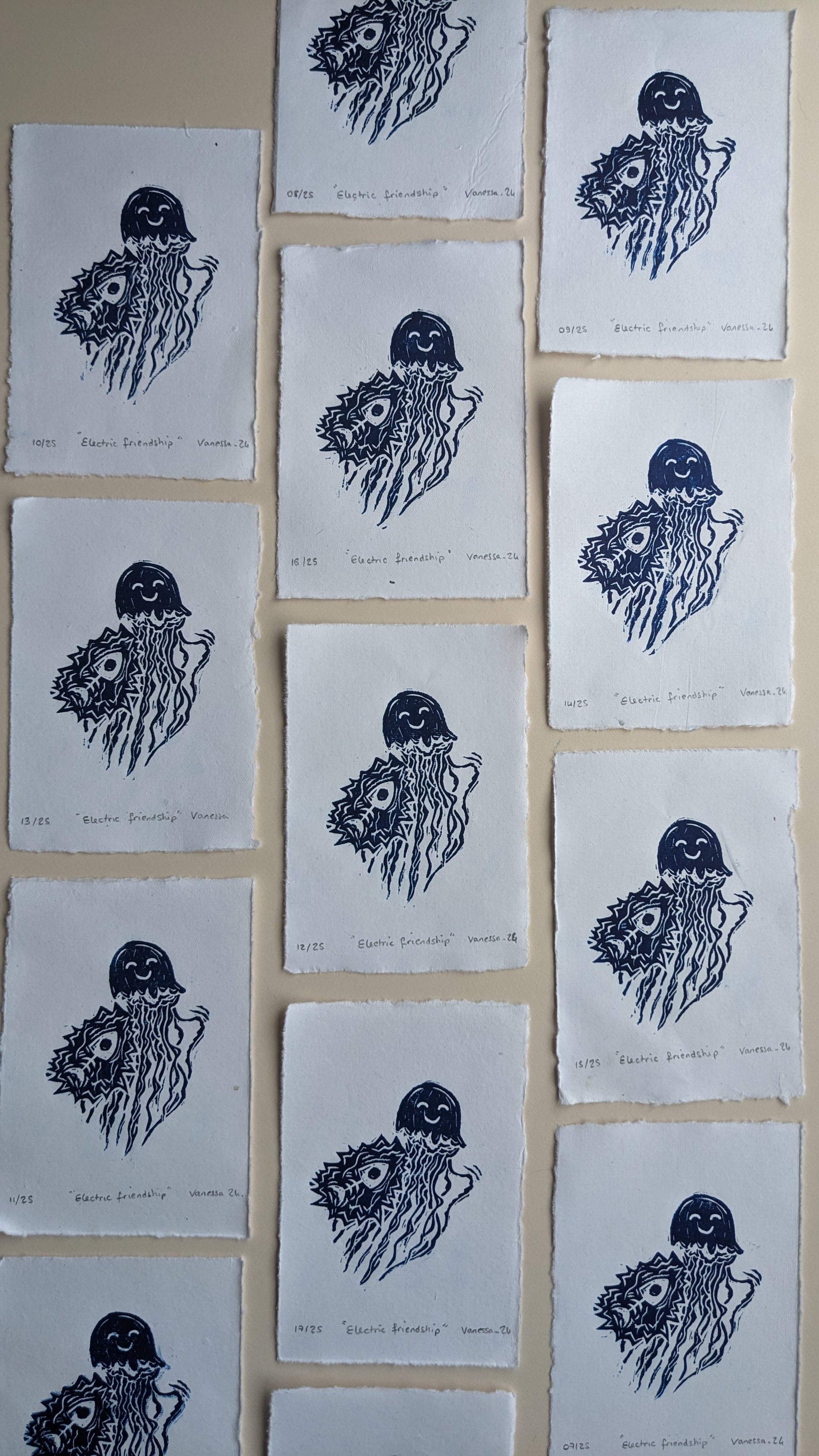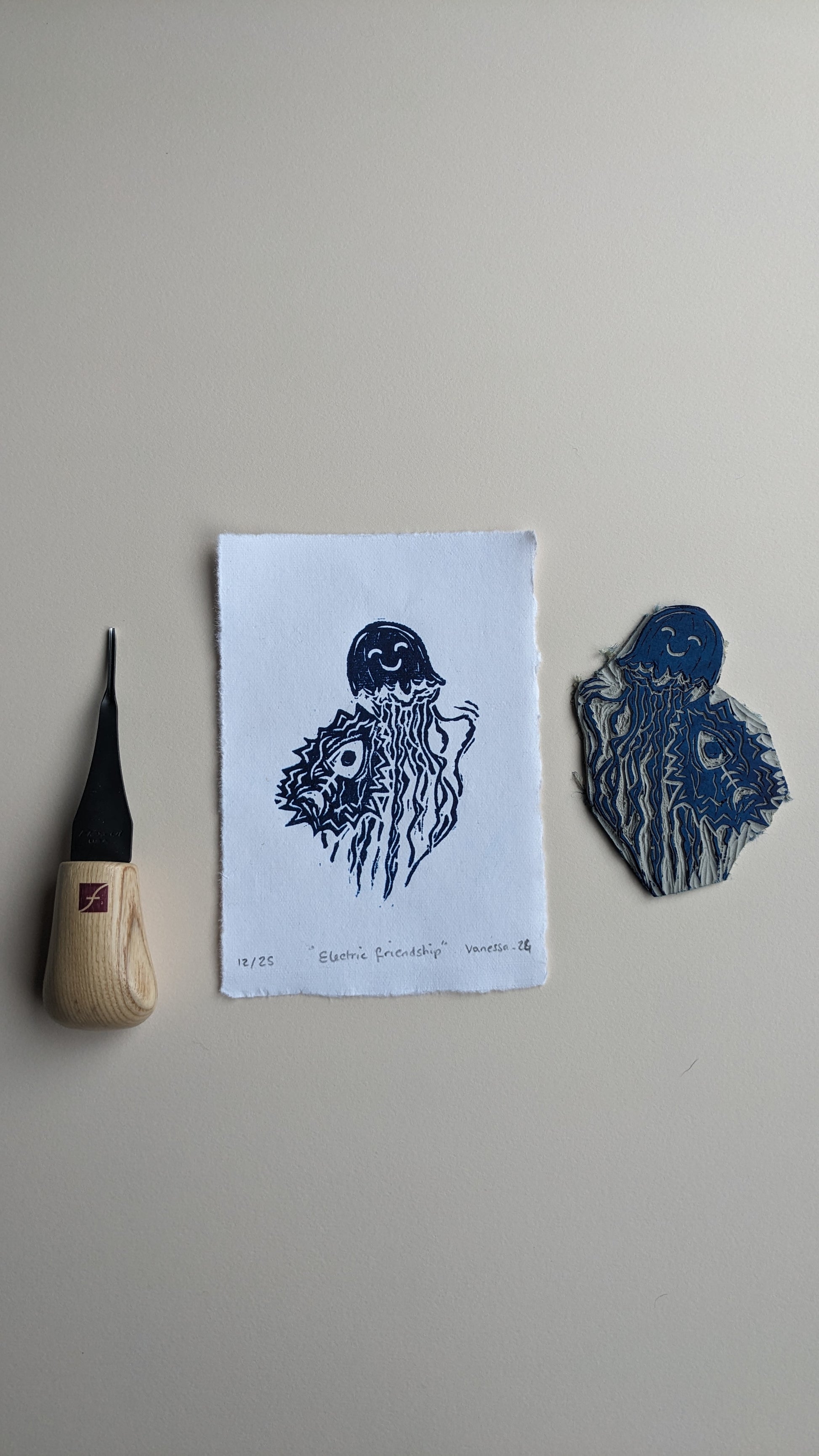 Please note that with the process of linoprinting and because this is an original print made with love, each piece of art can be slightly different, that is what makes it unique.
