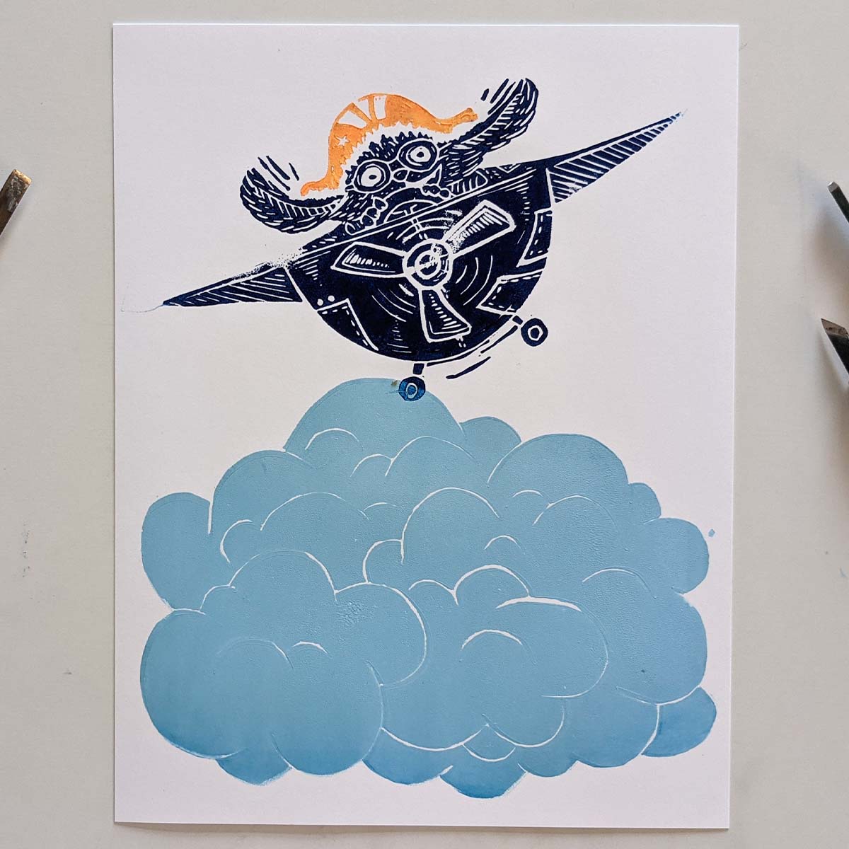 Please note that with the process of linoprinting and because this is an original print made with love, each piece of art can be slightly different, that is what makes it unique.
