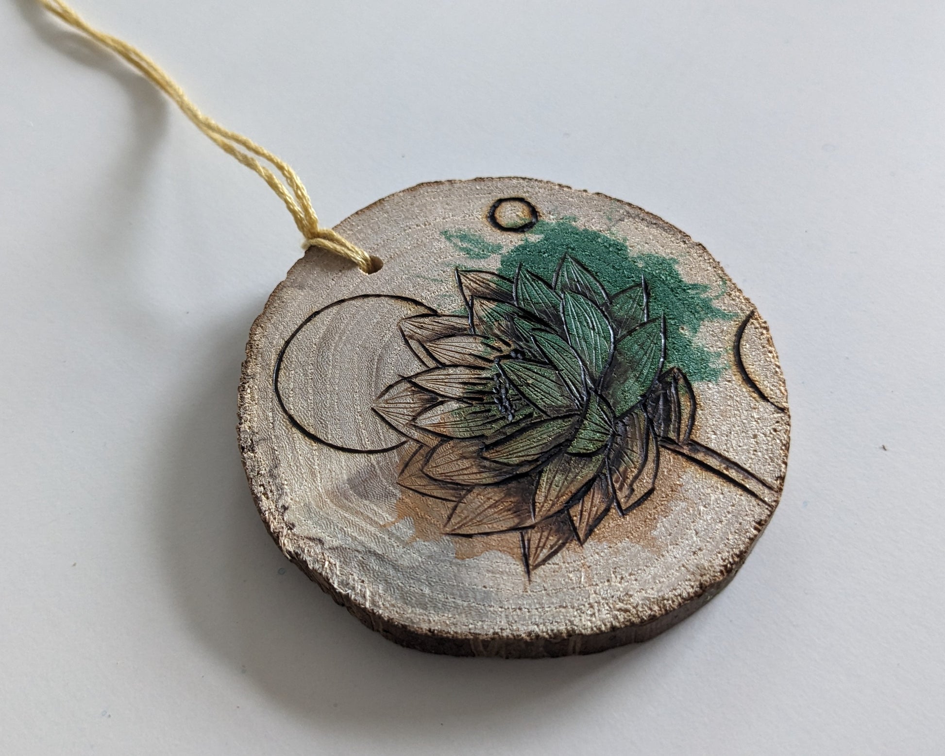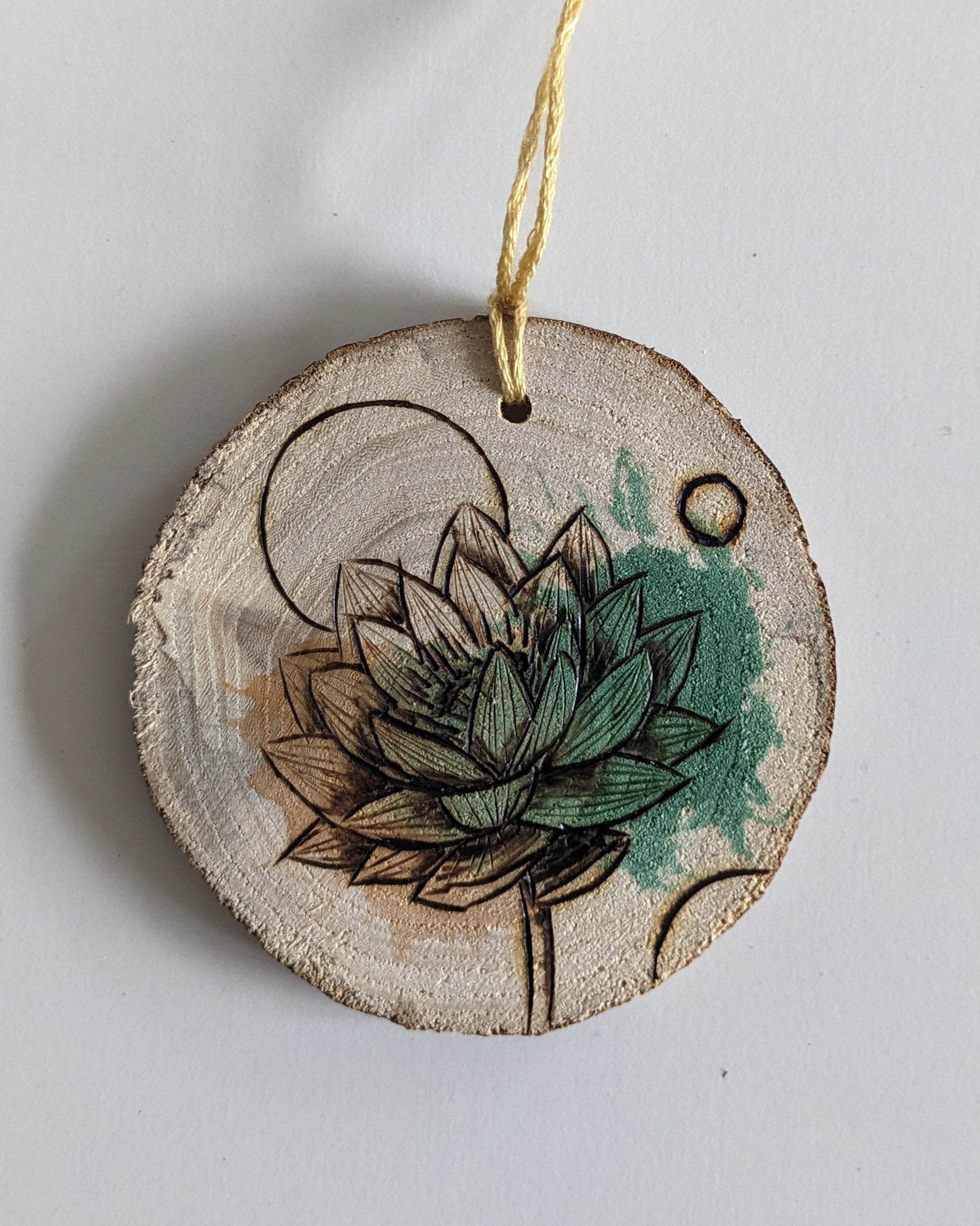 Watercolor and Woodburning on hand cut maple wood slice. About 3in diameter.