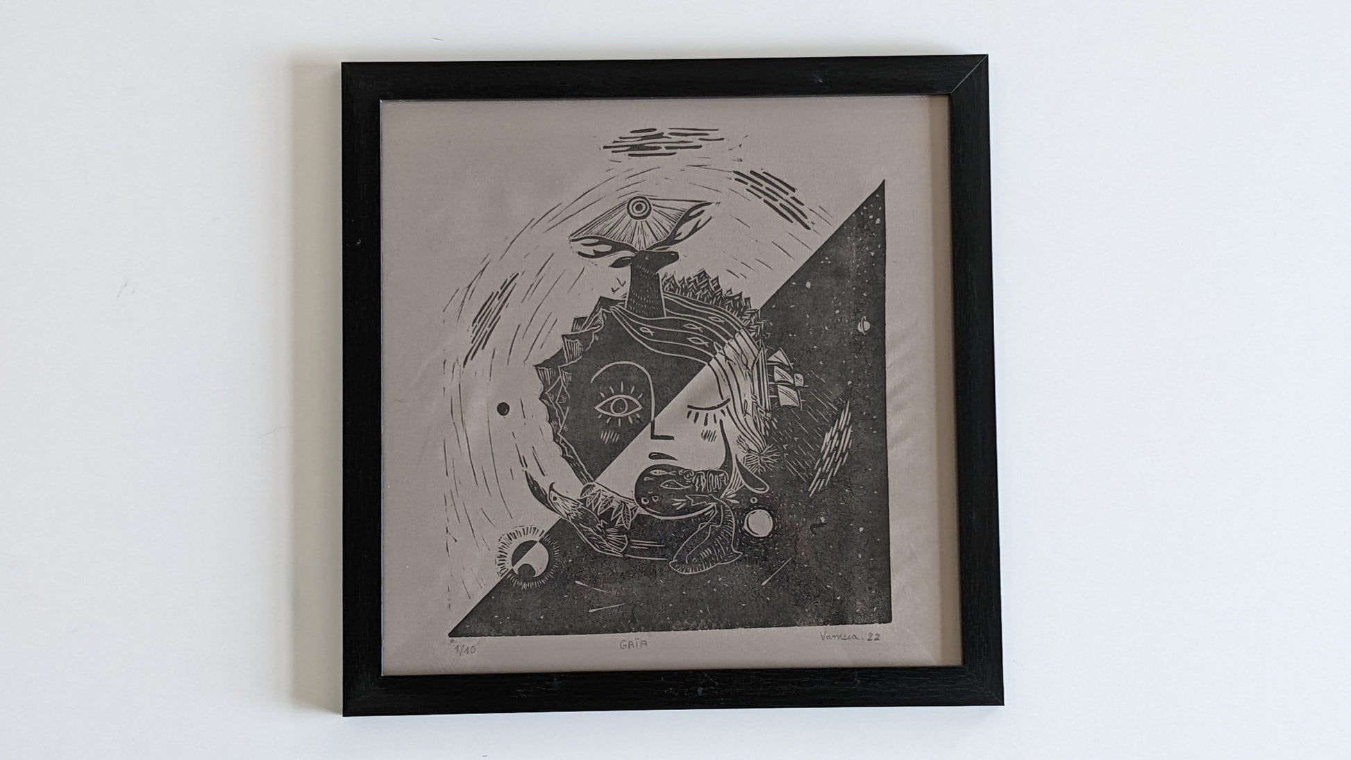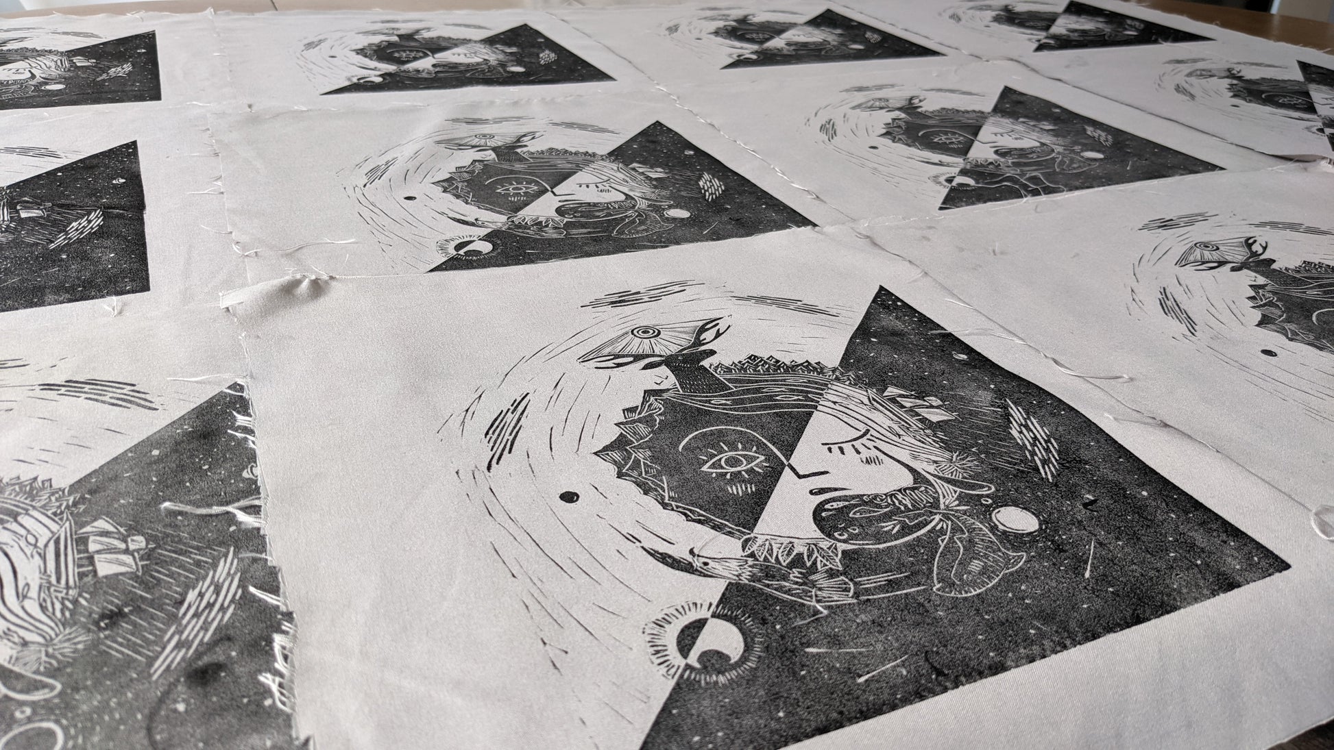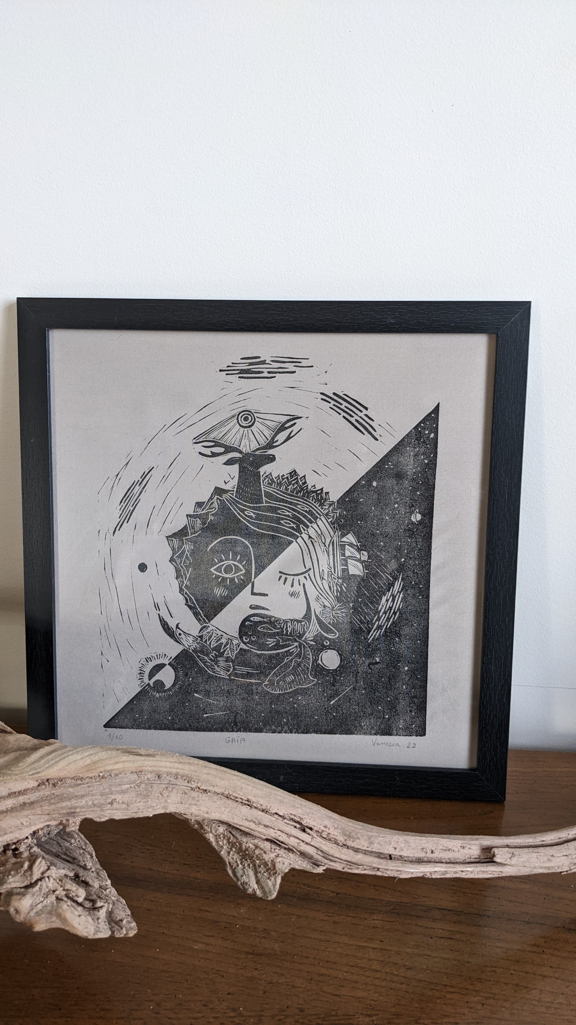 Please note that with the process of linoprinting and because this is an original print made with love, each piece of art can be slightly different, that is what makes it unique.