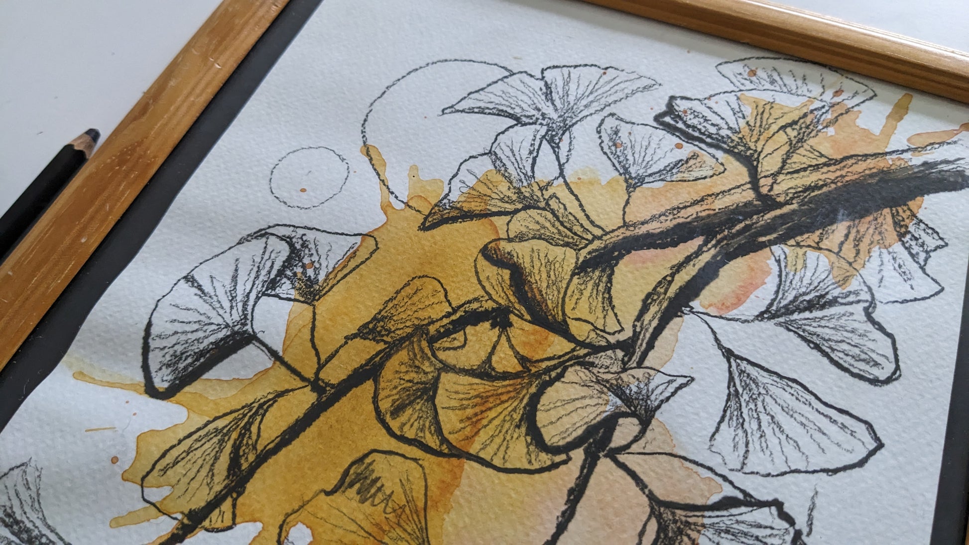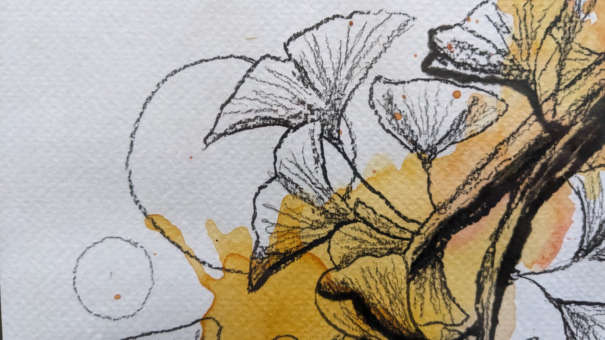 Fluid and aerial flowery painting in watercolor, graphic pens, charcoal
