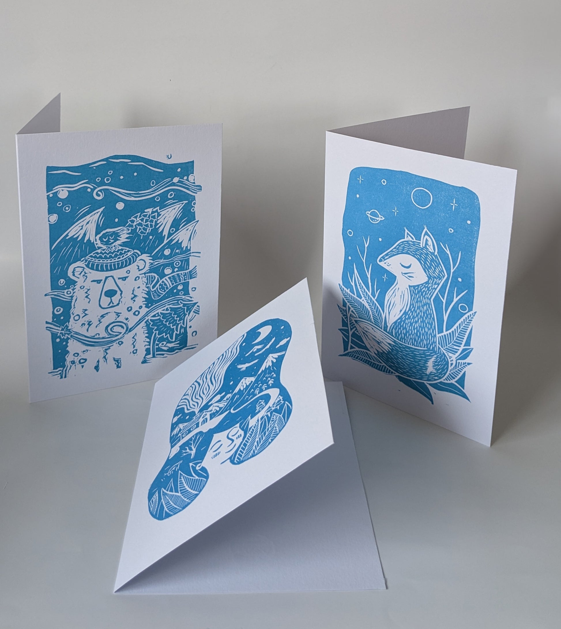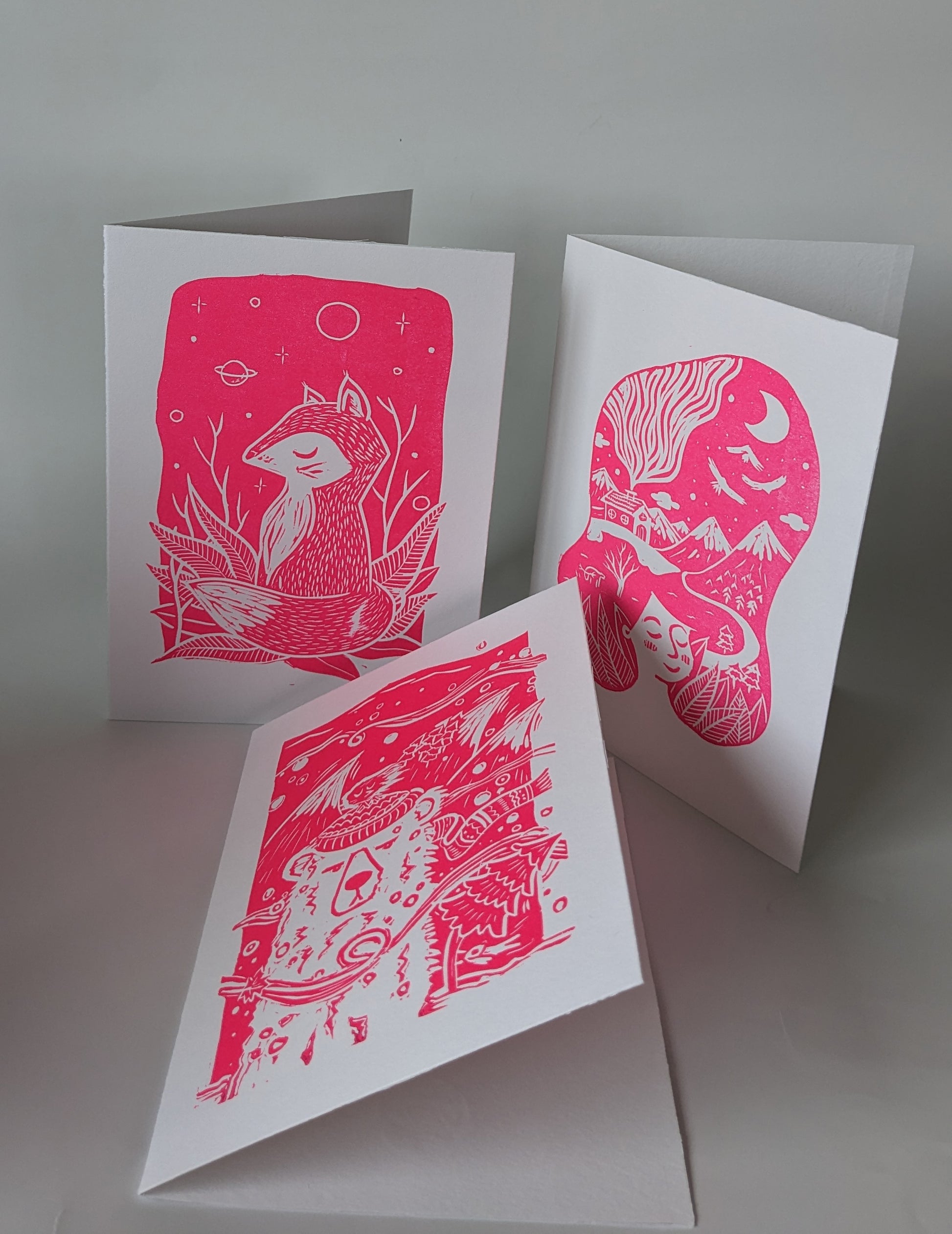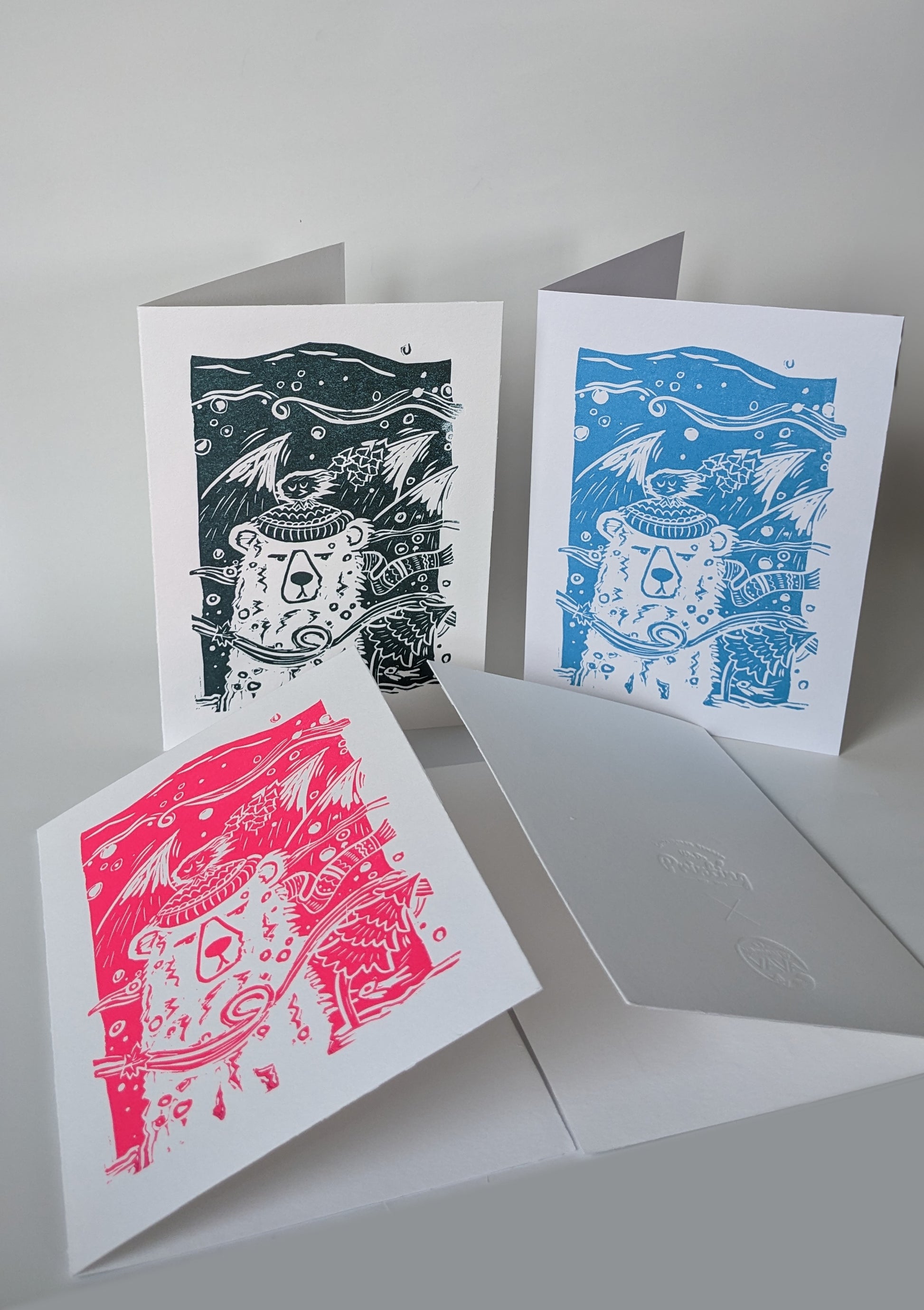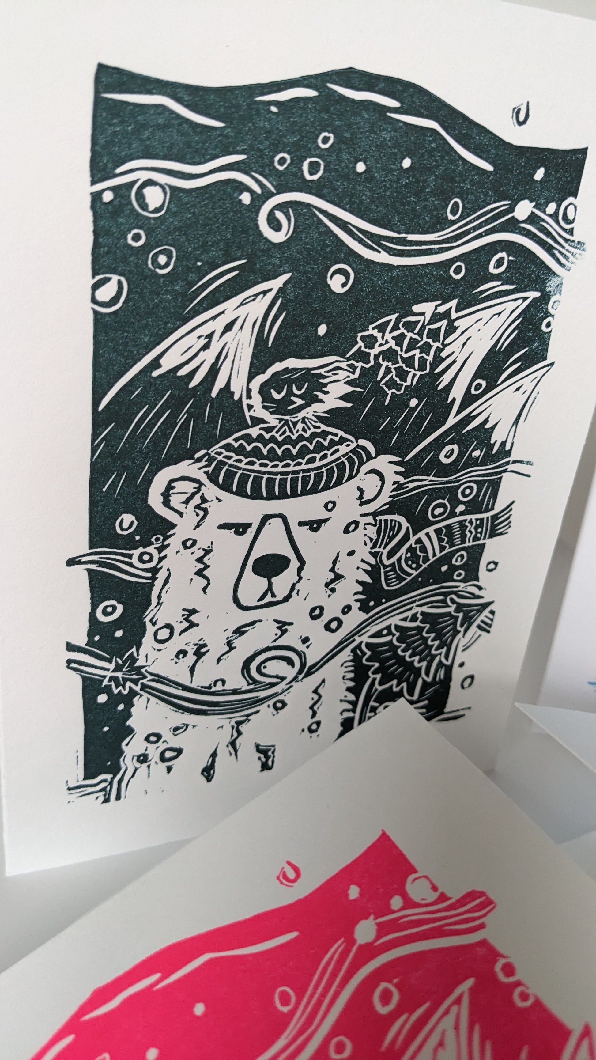 Cards in collaboration with We do design letterpress, combining both my linoprint skill and his letterpress skill.