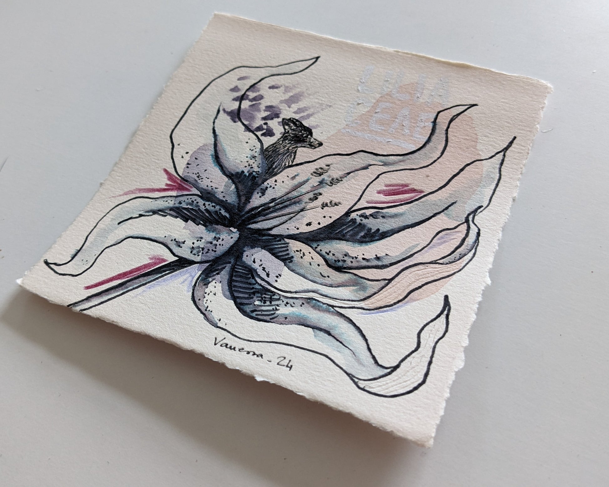 Mini flowery painting in mixxmedia on Fabriano watercolor paper.