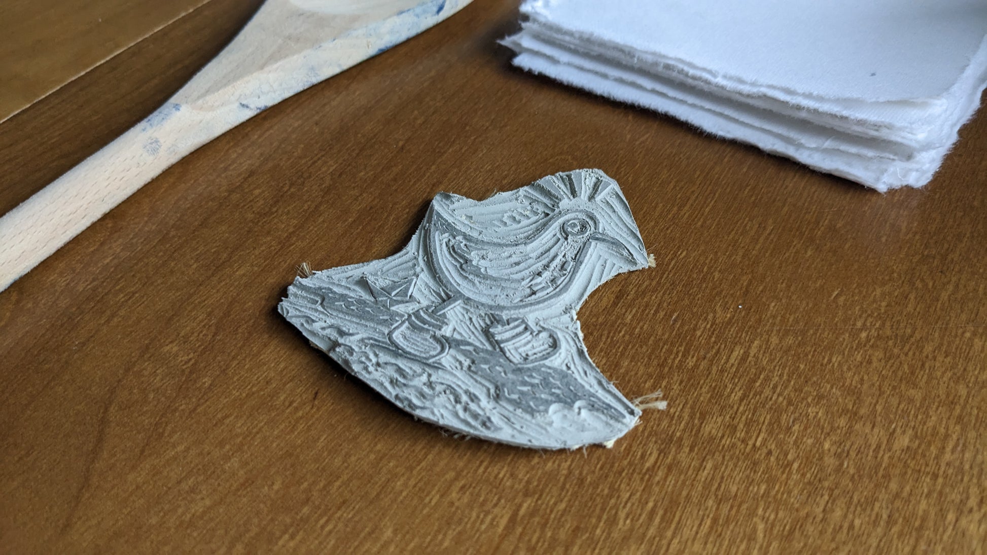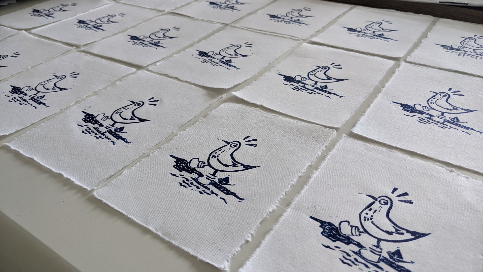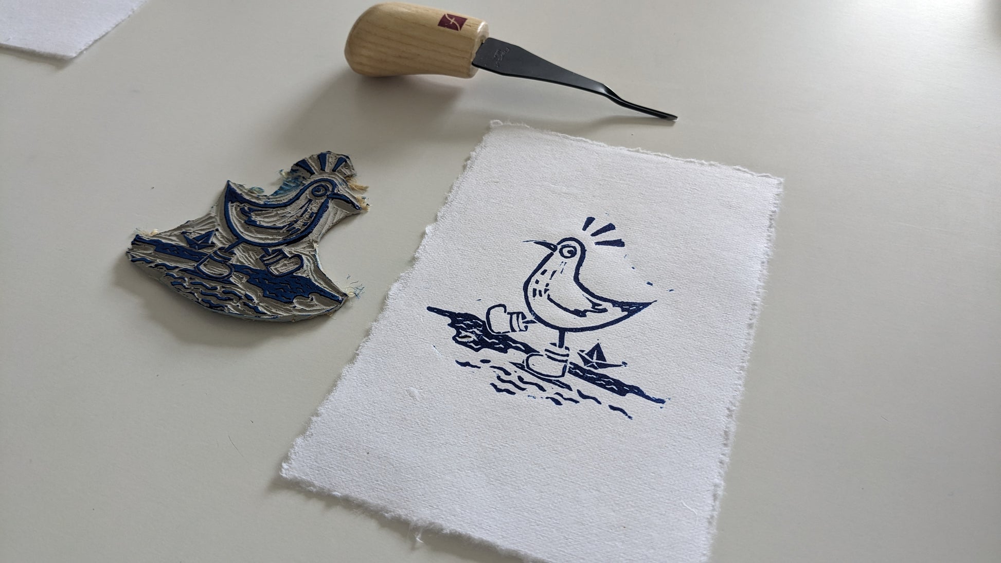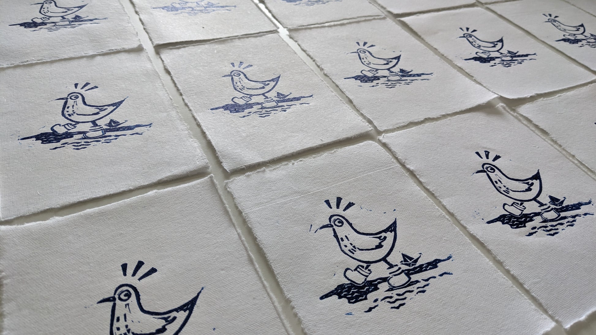 Hand printed linoprint on a 4x6 in (approx.), 130g/m2, on handmade paper by Wanderings.