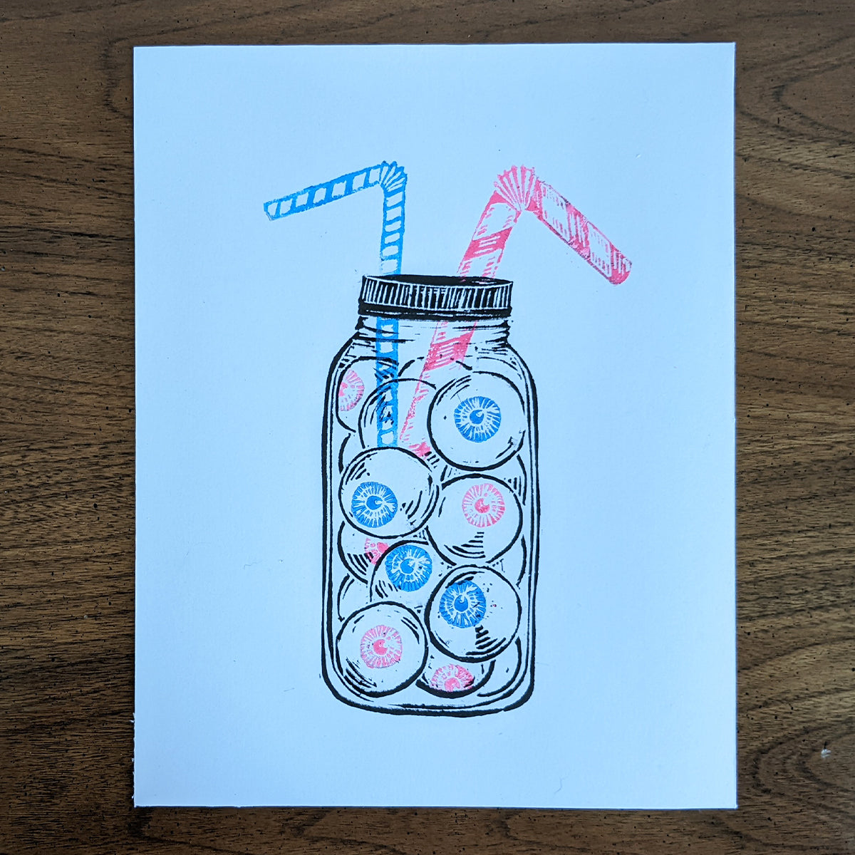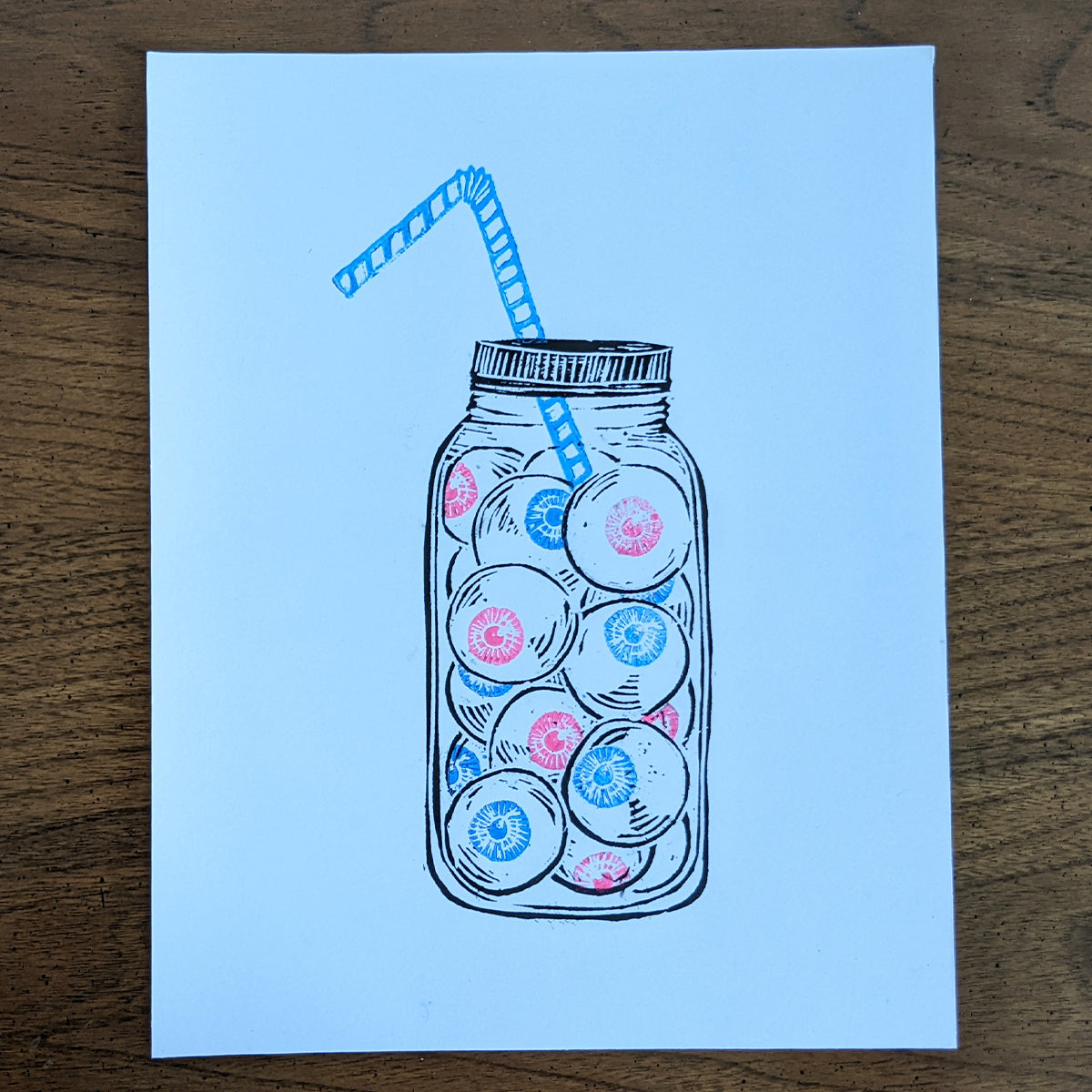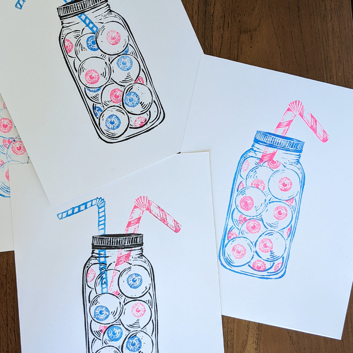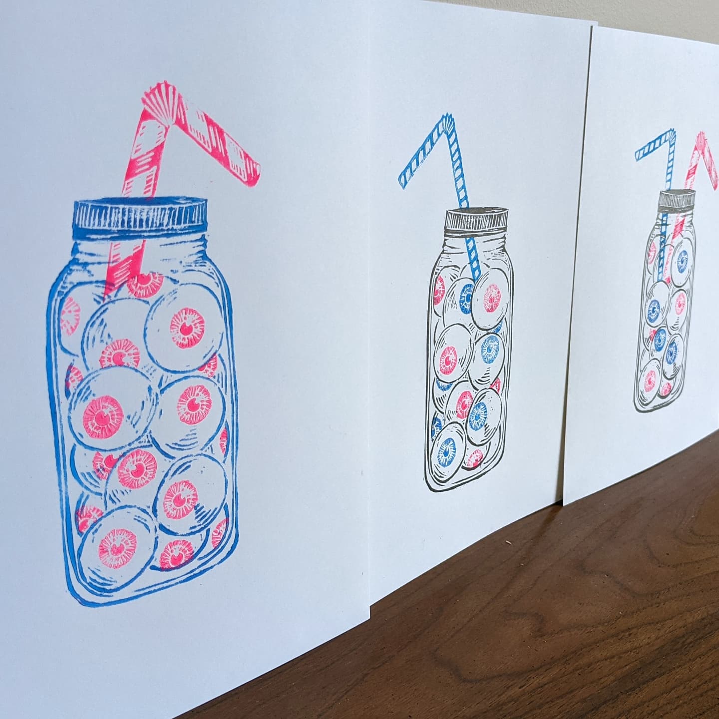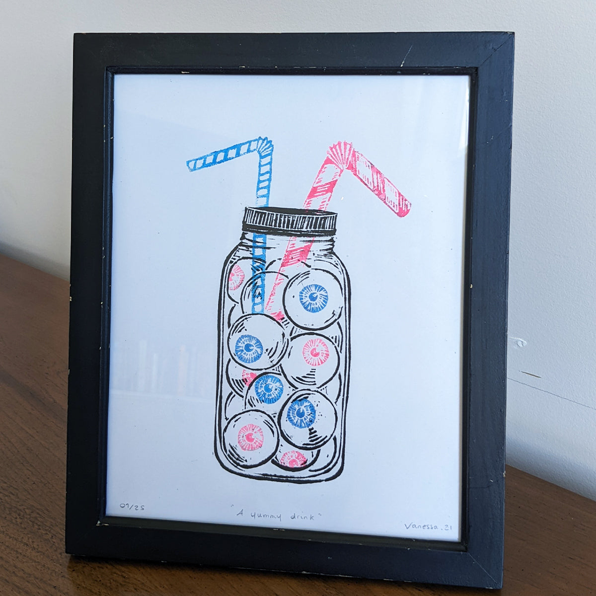 Please note that with the process of linoprinting and because this is an original print made with love, each piece of art can be slightly different, that is what makes it unique.